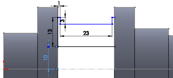 중심선 위쪽으로 10mm 떨어진 곳에 보조선을 가로로 긋고 아래와 같이 스케치를 해준다.
