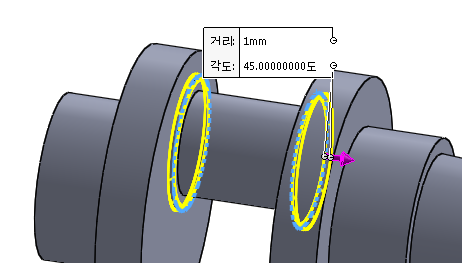 그리고 오른쪽 끝부분의 모따기를 0.5로 해준다.