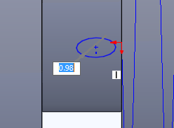 기준면에서 피치 1mm보다 작은 지름 0.98mm인 원을 스케치하는데