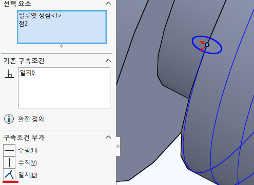 일치조건을 부여하면 아래와 같이 원과 나사선의 끝점이 만난다.