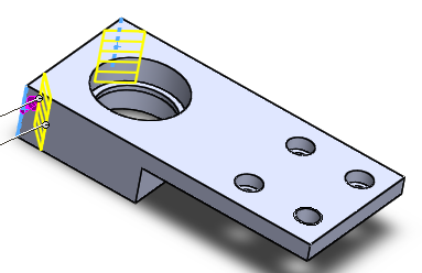 윗면에서 탭구멍(M10) 1개, 카운터 보어 홀을 3개 작업한다.