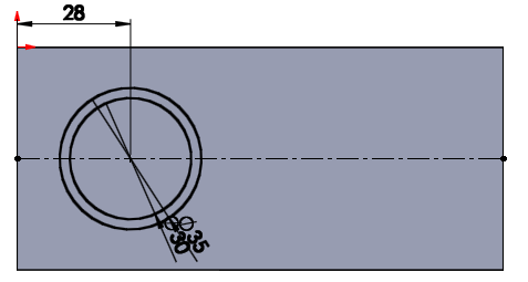 관통될 구멍 형상을 위해 가로로 보조선을 긋고 28 정도 떨어진 위치에
