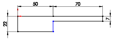 이번에는 반대쪽으로 돌출 컷을 하기 위해 형상의 아래쪽에서 스케치 작업을 한다.