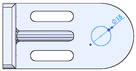 필렛 처리 후에 중앙에 지름 15인 원을 그리고 '돌출컷-관통'을 해준다.