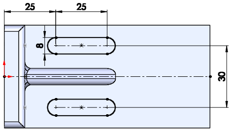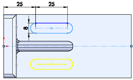 수평중심선을 긋고 직선홈을 치수로 구속시킨다.