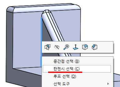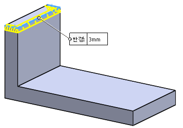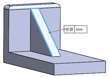 현재 파란색 부분이 필렛이 되어 있다.