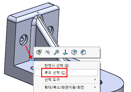아래 화살표로 지시된 선을 '마우스 우클릭 - 루프선택'을 한다.