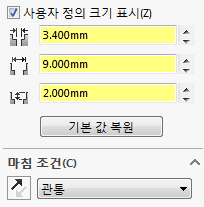 스케치 종료 후 '구멍가공마법사'를 이용해 카운터 보어를 적용한다.