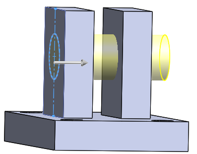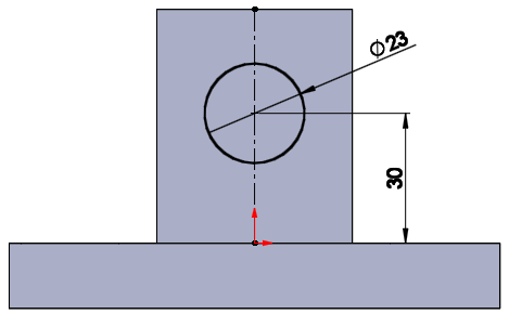 중심선을 세로로 긋고 원을 왼쪽에 스케치하고 가로로 대칭복사하여 치수로 구속한다.