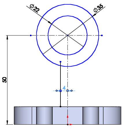 윗면을 초기 데이텀(기준)으로 잡고 아래와 같이 스케치를 한다.