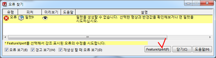 FeatureXpert가 오류를 간략해제를 하고 마무리 한다는 멘트가 뜬다.