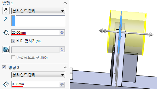 두께는 8로 하고 방향은 중간평면으로 한다.