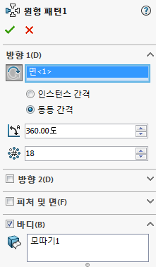 스케치 종료 후 피처-돌출 컷으로 15mm만큼 잘라준다.