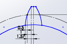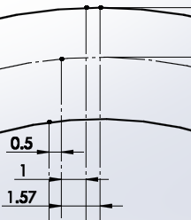 첫번째와 두번째 선의 간격 : 모듈/4 = 0.5