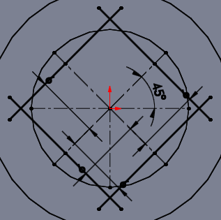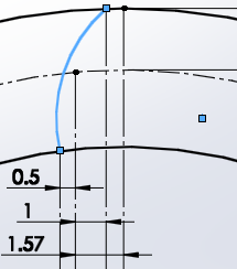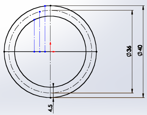 중간점은 호와 점의 일치 구속조건으로 붙인다.