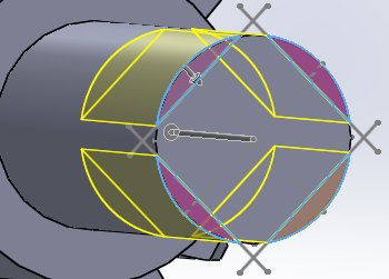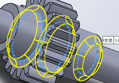 기어 완성 후 왼쪽면에서 지름23인 원으로 그리고