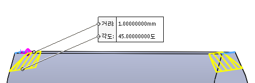 돌출보스 후(16mm) 모따기(1mm)를 한다.