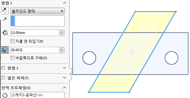 아래로 13만큼 , 안쪽 구배를 30도로 준다.