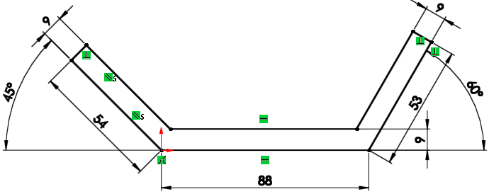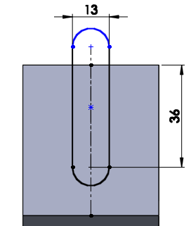 중심선을 수직으로 긋고 직선홈으로 그리고 아래의 치수로 구속시킨다.