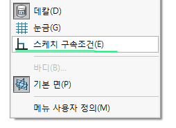 현재는 '스케치 구속조건'이 보이지 않는 상태이다.