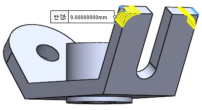 마지막으로 필렛을 9만큼 주고 모델링을 완성한다.