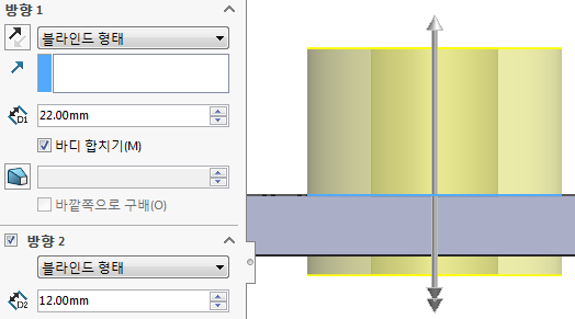 중앙에 위 아래로 돌출되는 원통형상 작업을 해보자.