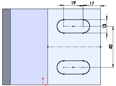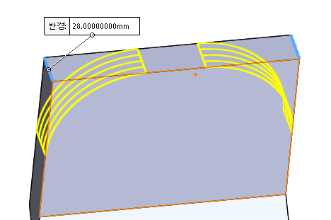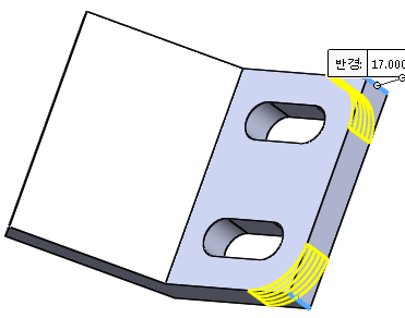 오른쪽 형상 위에서 아래와 같이 스케치 작업을 한다.