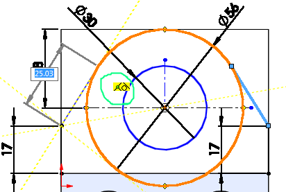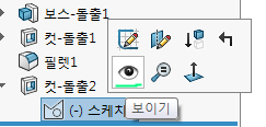 이전의 원의 형상이 있는 스케치를 보이기하고