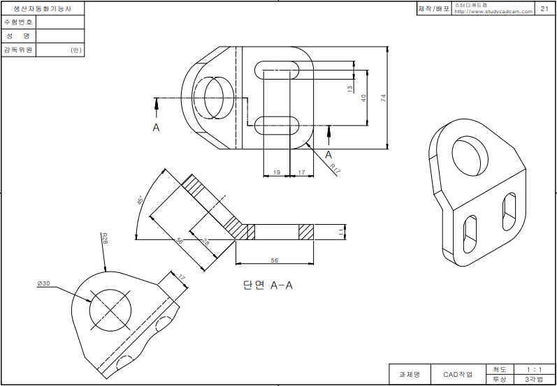 | 생산자동화기능사 CAD작업(24번) 모델링 (0) | 2020.05.11 |
