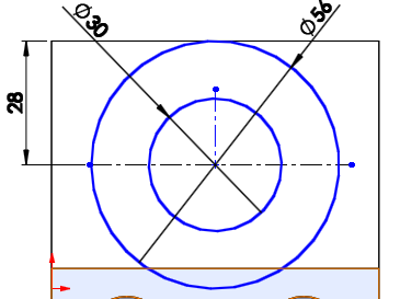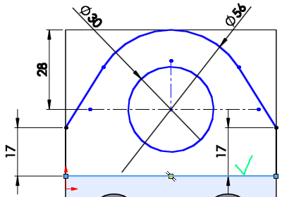 원의 반지름 값을 이용해서 28만큼 떨어진 수평선을 긋고
