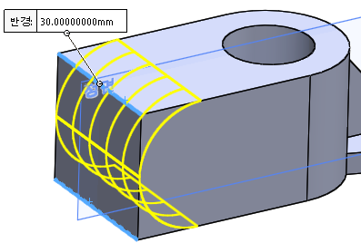 필렛을 30만큼 주면 원형 형상이 될 것 같다.