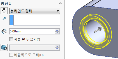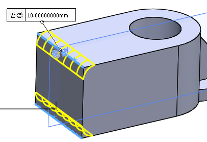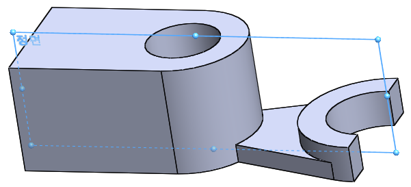 오른쪽 원모양은 도면을 보면 반쪽 형상으로 되어 있어야 한다.
