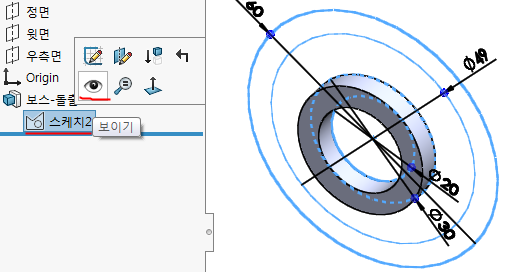 지금 보이는 스케치는 계속 '보이기'를 유지한다.