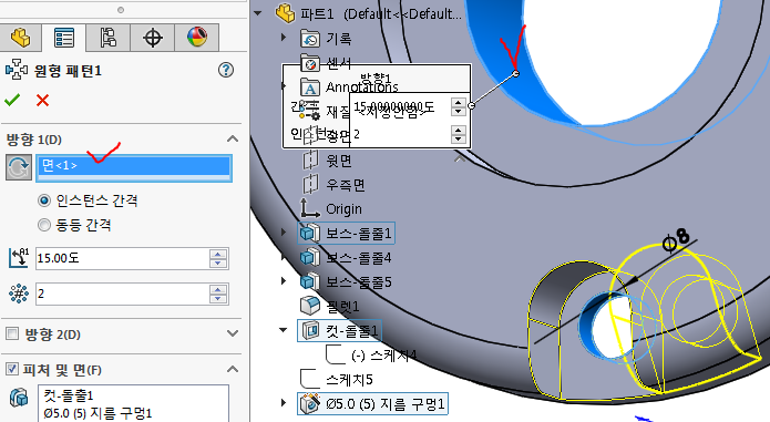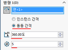 원형패턴으로 복사를 할때 아래와 같이 해본다.