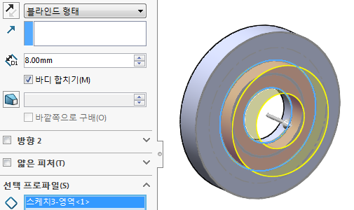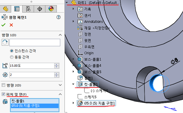 위의 그림에서 '컷-돌출1'을 다시 선택해보면