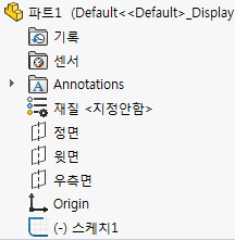 설치 후에 디자인 트리에 '정면, 우측면, 윗면'이 영어로 되어 있으면 수정을 할 수 있다.