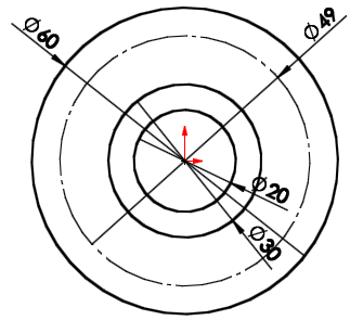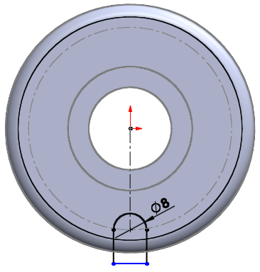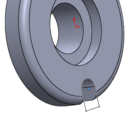 정면에서 회전체의 단면 모습을 스케치 한다. 스케치를 회전 보스 작업을 해준다. 오른쪽 면으로 가서 중심선을 긋고 아래쪽에 원을 그린다. 스케치된 원을 돌출 컷 - 관통 해준다. 다음은 '돌출