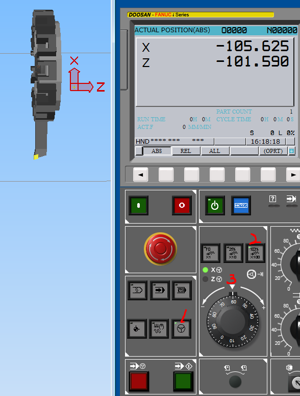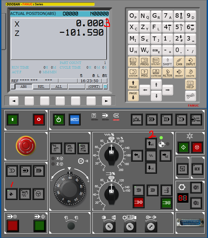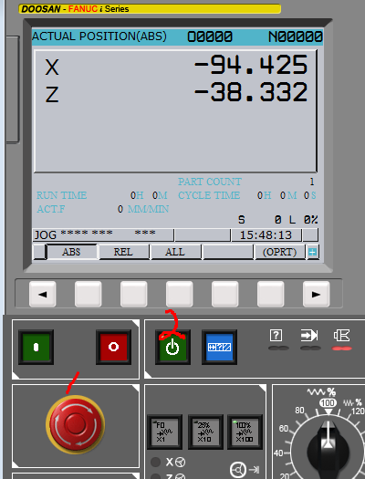 X축부터 먼저 원점복귀를 한다. Z축부터 하다보면 심압대와 충돌한다.