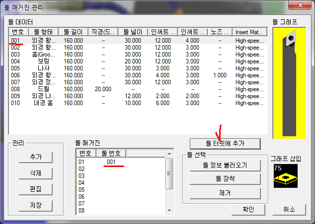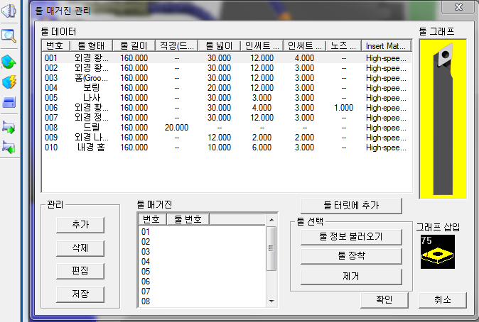 그리고 교체를 하면 공구의 위치좌표 편차가 달라지기 때문에