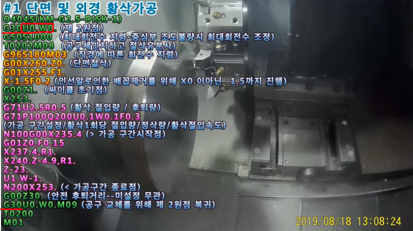 G96 S200 M03 (정회전 S200으로) (G50은 처음에 지령해 놓으면 된다.)