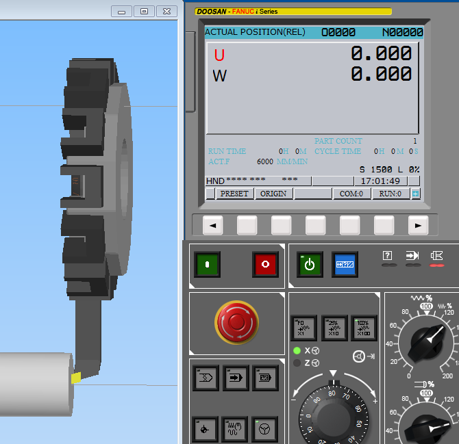 마지막으로 Cycle Start를 클릭하면 주축이 회전한다.
