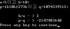 printf("\tp-q - > %d\n", p-q);