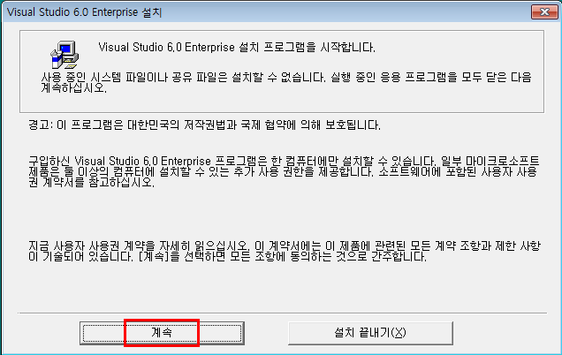 윈도우 7에서 비주얼스튜디오 6.0 버전을 설치해 본다.