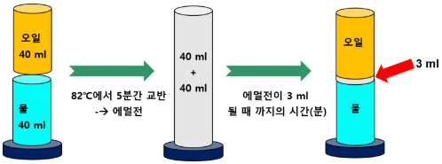 - 오일과 에멀젼이 분리되는 시간을 기록함