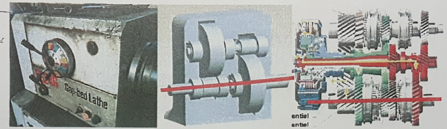 7. 유욕 급유법을 사용하는 장치이다. 이 장치에서 유면은 어느 위치에 있도록 해야 하는가? (선반 같은 기계를 보여준다)
