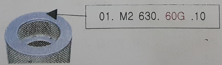 14. 길다란 휠터를 보여주다가 옆에 있는 휜색 플라스틱 커버에 새겨진 01. M2 630. 60G. 10.... 이런 문자가 있고 그 중에 60G는 무엇을 나타내는가?