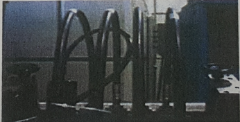 (두 개로 갈라진 압력탱크 내부를 보여준다. 좌측에는 사각형이 바닥에 있고 우측에는 가느다란 철사(환봉)가 아래쪽으로 2/3 가량 내려와 있다. 좌측 바깥 아래쪽으로 볼밸브가 하나 달려 있다. 이것의 명칭과 용도는)
