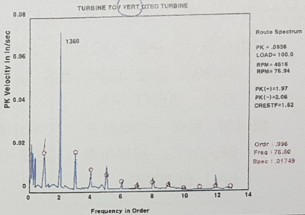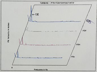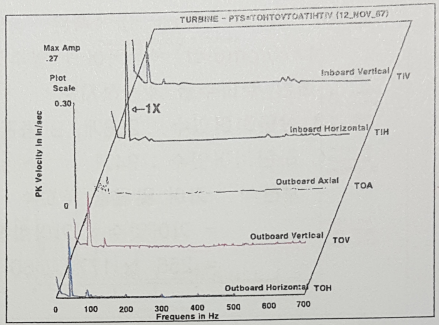 64. 동영상은 TURBINE의 수직방향에서 측정한 진동 스펙트럼을 보여주고 있다.