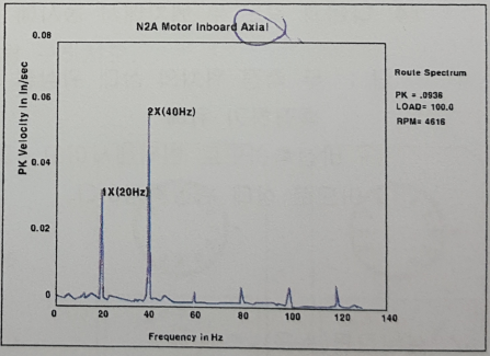 그래프 중간에 약간높은 주파수에 1X(20Hz), 두 번째 조금더 높은 주파수에 2X(40Hz) 라고 표시되어 있다.