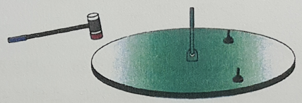 케이블이 달린 작은 망치를 매달린 둥근 원판을 두들긴다. 원판에는 작은 센서가 보인다. 망치는 캡을 교환화는 구조이다.